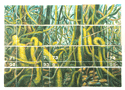 | |     Artist’s Statement (Sir Hermann Black Gallery, 2002) This exhibition offers for sale paintings comprised of individual panels or “lots”. Each lot is numbered. Upon sale each painting is disseminated according to the number of lots sold and where they are housed. The original work can only be reconstituted if all parties agree to co-operate in its reconstruction. Valuations – “It’s an art work AND a real estate business plan!” Two visions of mutually assured seduction: native forests transformed into leafy suburban houses – inside each house a picturesque oil painting of a virgin rainforest. The straightened gazes of the artist and the collector/real estate agent, are equally fixed on frame and grid. The subject matter of Art Realty concerns the loss, commodification and cultural valuation of our natural environment. The more valuable a work becomes the more it physically disappears yet multiplies as image. The fewer mangrove trees left standing the more we love them to death. Now the natural world can be directly exchanged for carbon credit points. Fine art aesthetic systems of rarefaction and speculation also build up cultural credits. The grid unifies the world: 1 old-growth tree equals 1 new car equals 1 Arthur Boyd painting equals 100 farting sheep. The grid overlays both the material and immaterial worlds alike. Pest Inspection Report – So where does the meaning of the exhibition Art Realty reside if not in the individual lots? The individual purchased lots do have value both in a speculative monetary sense and as indexical evidence or proof of the exhibition event. The lots are indeed rare objects in a limited material sense. Yet the meaning of the exhibition is, in a gestalt sense, larger than the individual lots. In an empty moralistic sense meaning resides in the gaps of white space (white noise of representation) between the framed lots – in the bonds that no longer bind the useless art object. In an aesthetic sense meaning always seeks to overflow the frame, to flood the gallery and fill the world beyond. In a pathetically real sense, the beautiful concept lives only for the duration of the show. This is post art gallery art that needs the gallery in order to leave it. Reading the prospectus – In a negative aesthetic Modernist sense (“we must destroy the meaning of art as representation”) Art Realty is a conceptual event process that never ends. In a positive postmodernist sense, that drives beyond the narrow confines of aesthetics, there is a self-reflexive subversion of ideological closure – “there hangs a banal panel of non-descript marks” – useless as a found piece of some lost jigsaw puzzle. Perhaps a Borgesian puzzle where the impossible task is to fit the real world back together now that any monological truth has ceased to exist! So we are left with piecemeal fictions rather than total works of art, yet we hanker for the gaps to be filled, in life as well as art. Those pad-locks are both reassuring and terrifying. No deposit and no interest for the rest of your life! – Each lot is a developed block that comes complete with special features ready for you to build your own special vision. A unique once only offer of an original work of art authenticated by the artist in his own hand. Watch your interest grow with each passing year. Conditions of sale – All lots are numbered and signed by the artist and come with a site map and certificate. Information on adjoining lots may be supplied if the owner-neighbours are all in agreement.