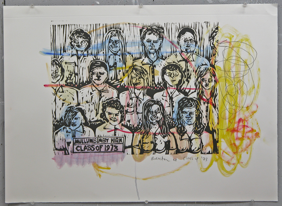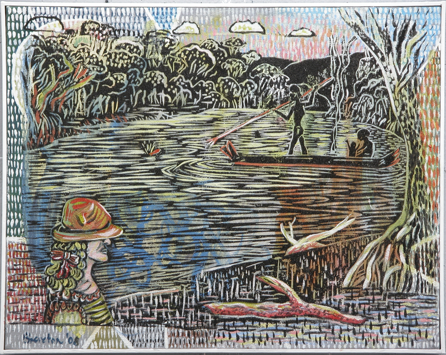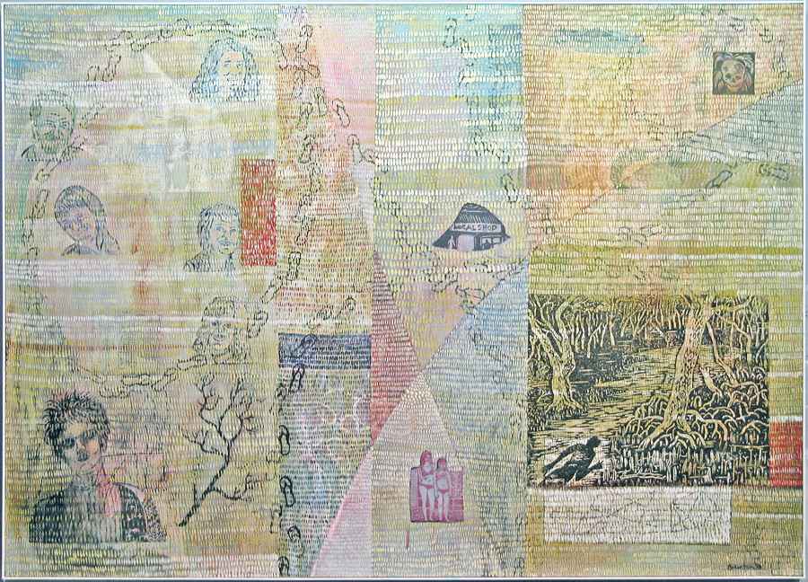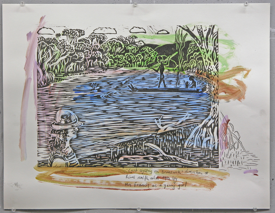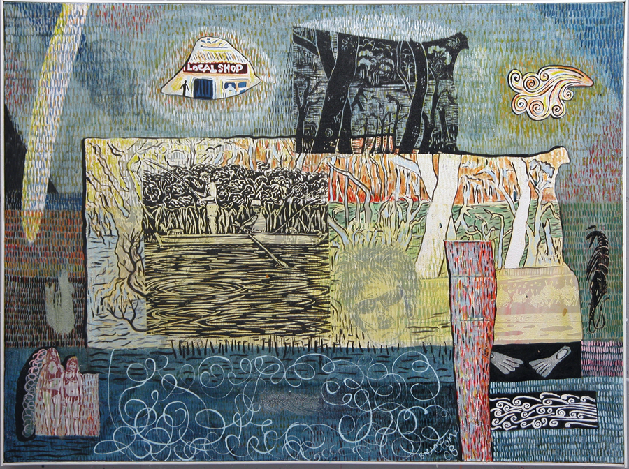 acrylic, & linocuts on paper, 49cm x 76cm $350 |