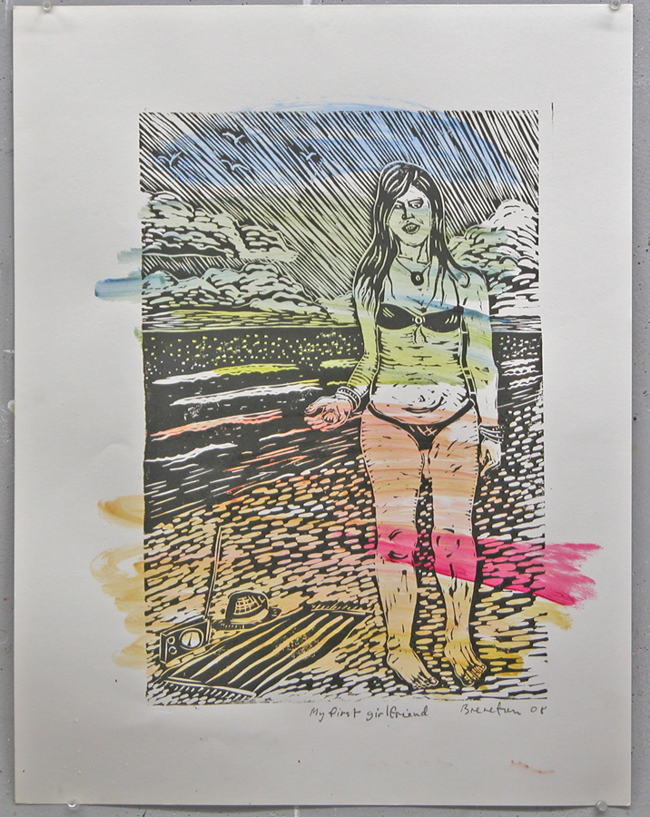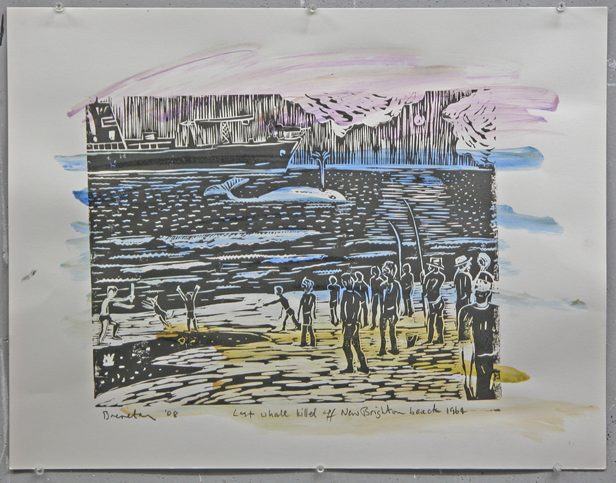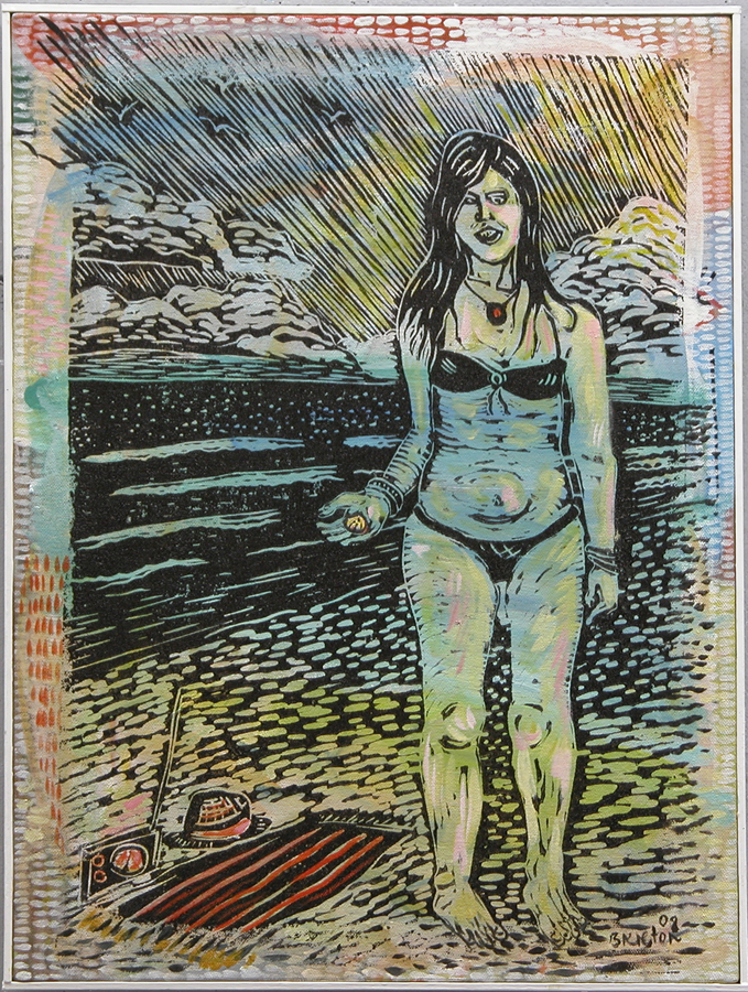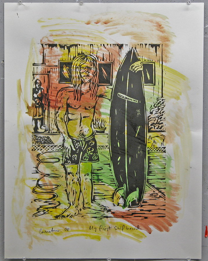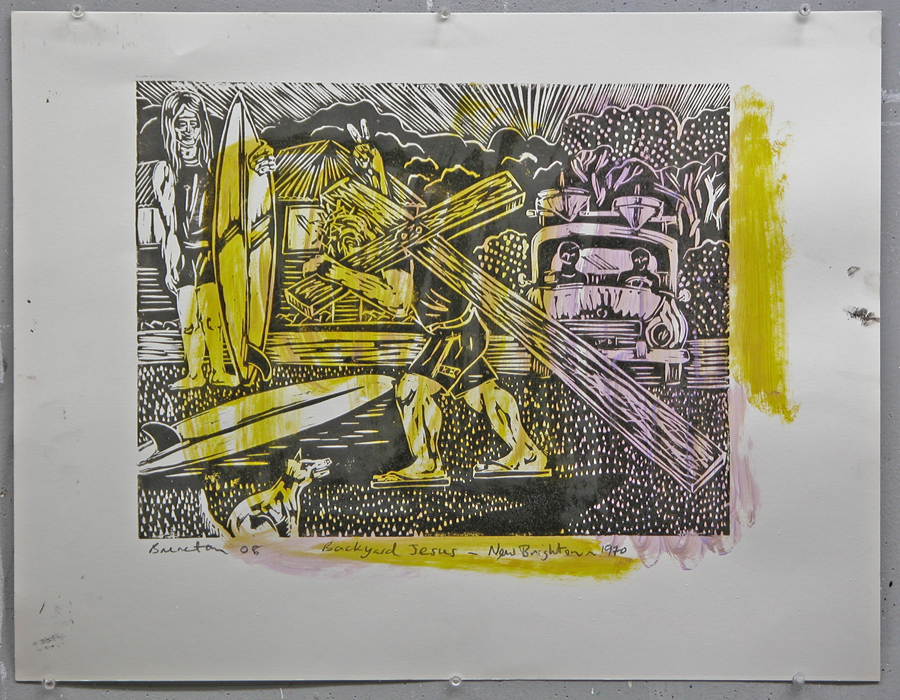 acrylic, & linocuts on paper, 49cm x 76cm $350 |