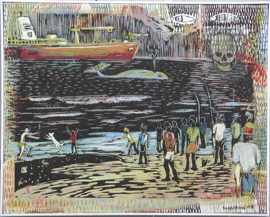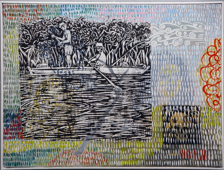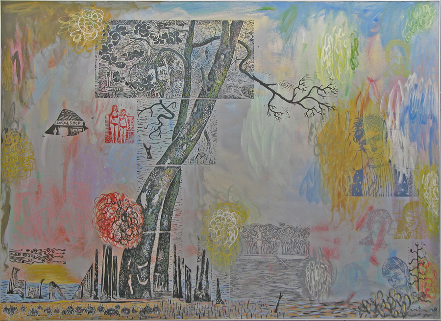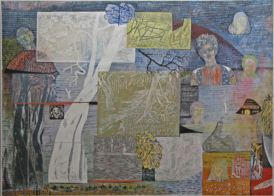 oil & linocuts on canvas, 122cm x 176cm $3500