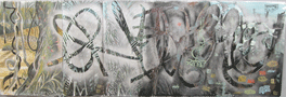 ![]() Tagging the Escarpment, 80cm x 220cm, linocut stamps, pastel, spray enamel, graphite on paper, 2005 $2900 sold |